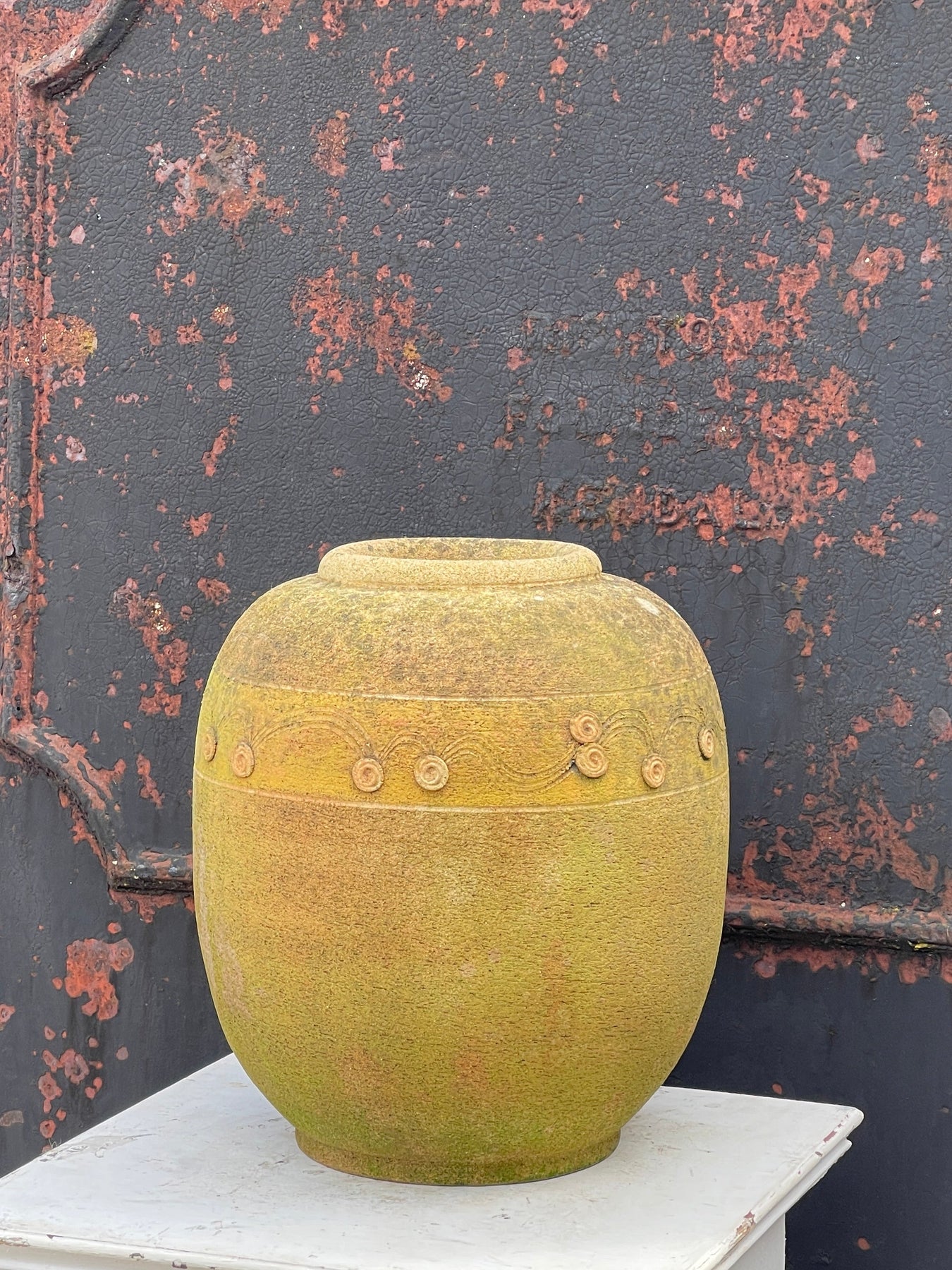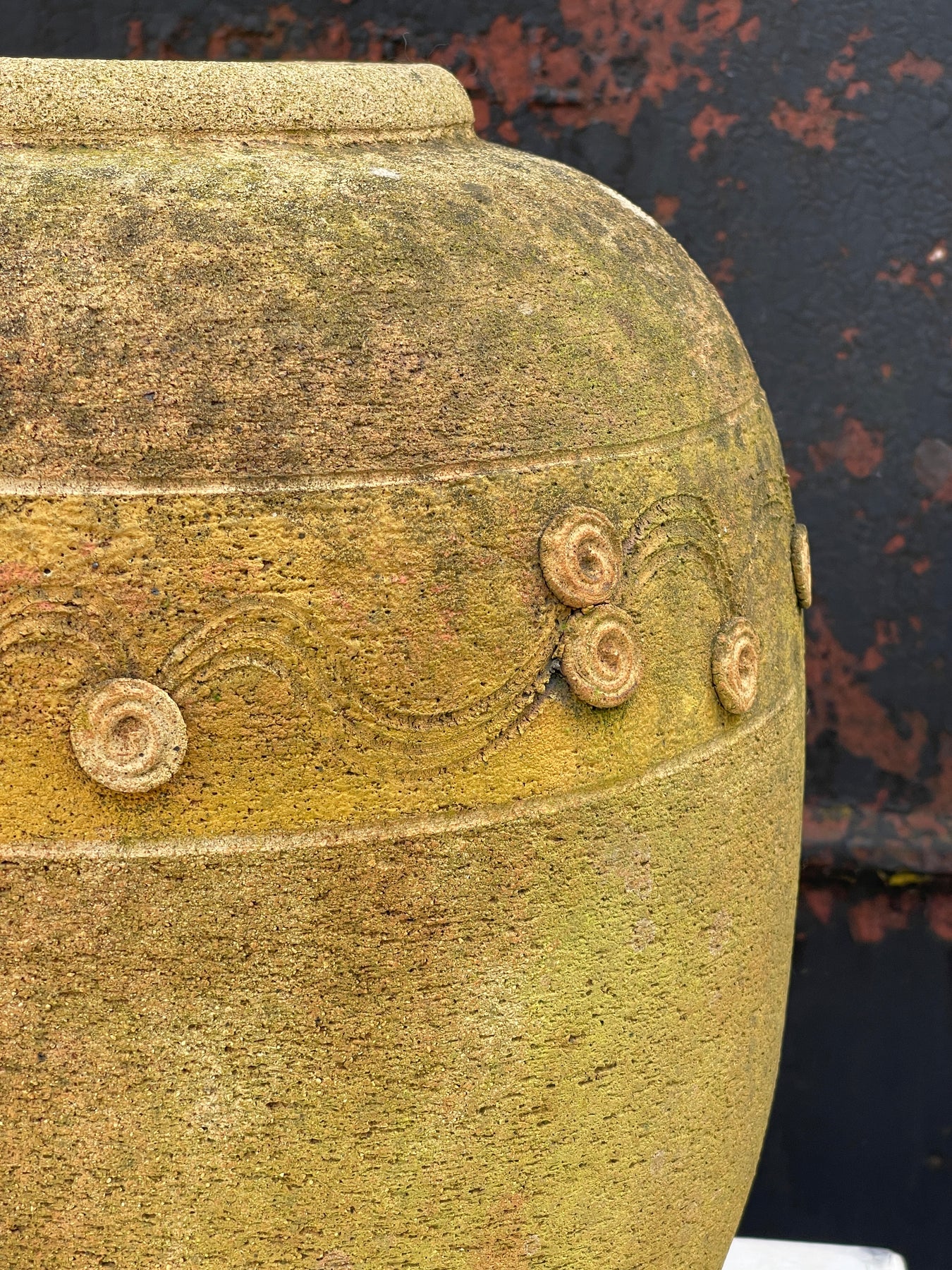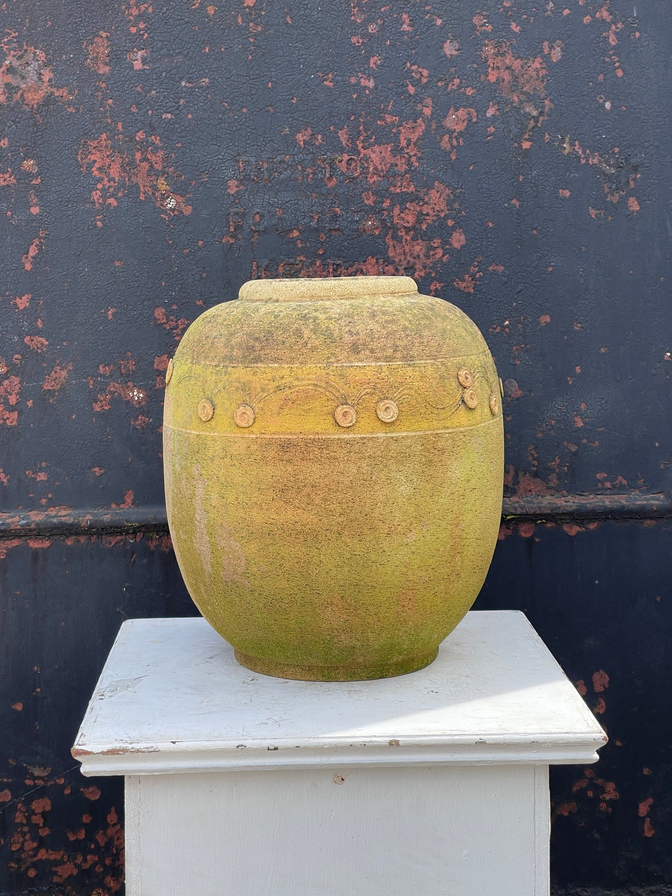 Most of Nigel’s work is hand-built using slab construction, coiling and, occasionally, throwing and coiling in combination. Craft-crank is used, fired to 1250°C in oxidation. Firing to this temperature ensures that all the work is frost-proof and can safely be left outside all year. Limited use is made of matt glazes with other colour coming from metal oxides and high firing slips. On occasion the work is fired several times to allow for further refinement of the ‘painted’ surface.