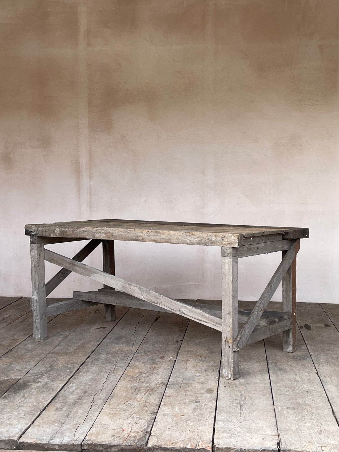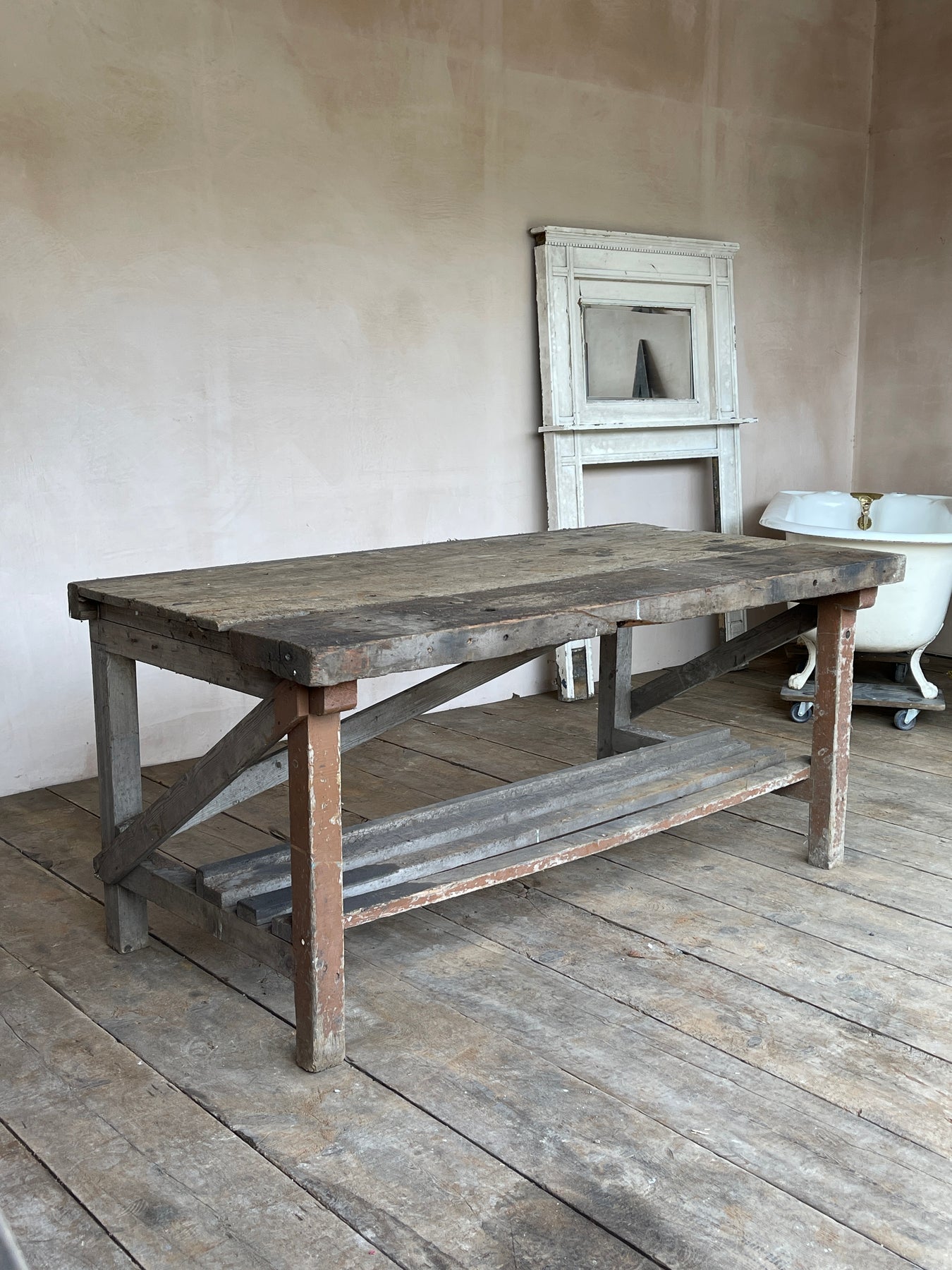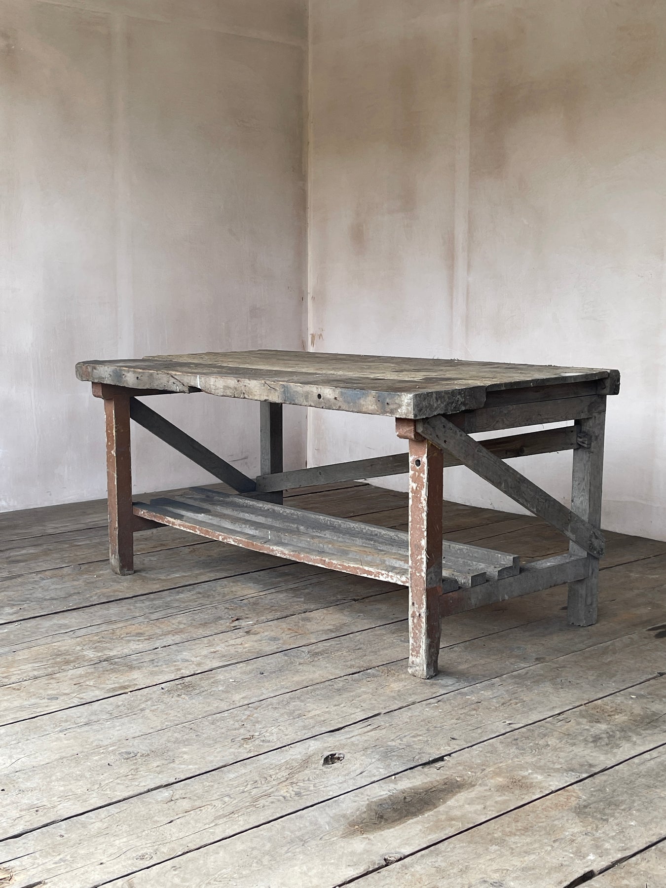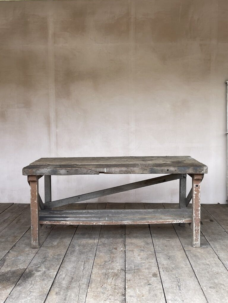 Workbench / potting table with slatted shelf. A practical object perfect for use in the garden or workshop.